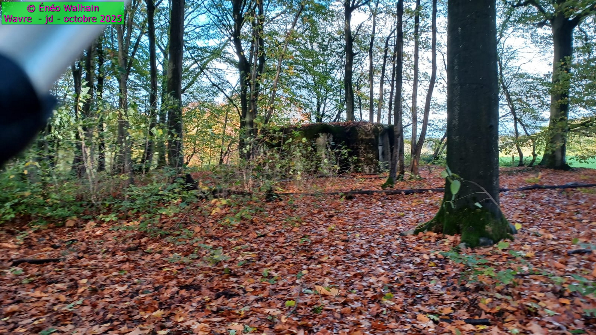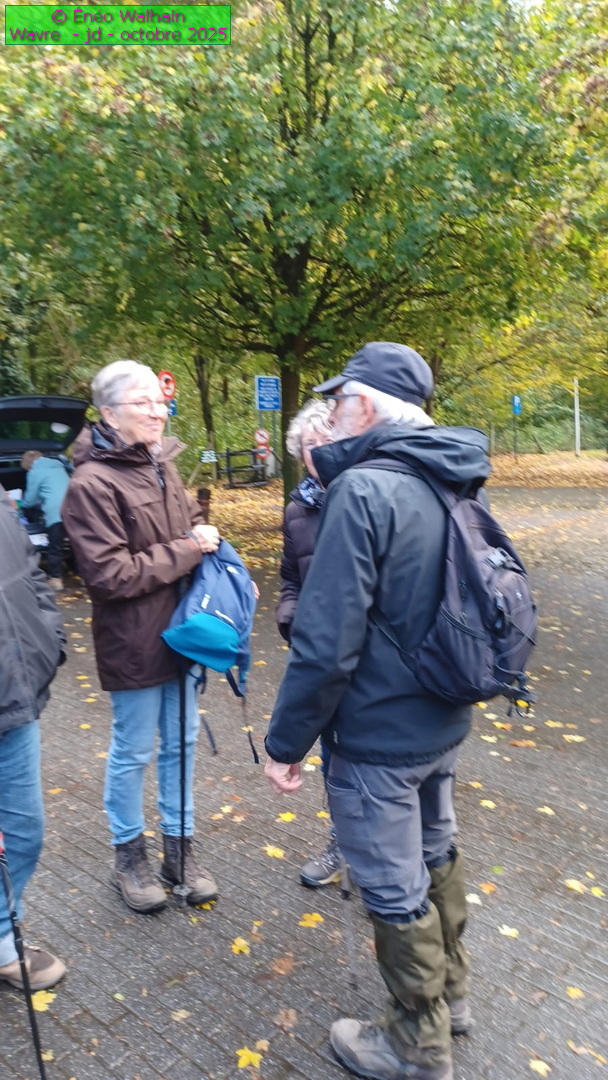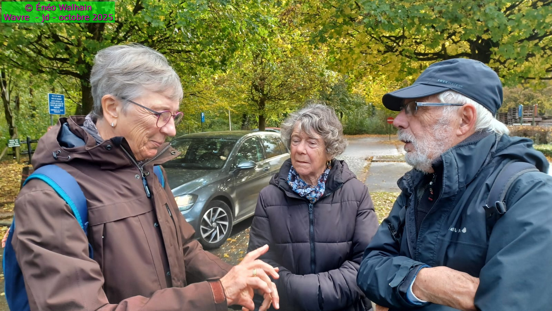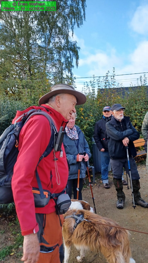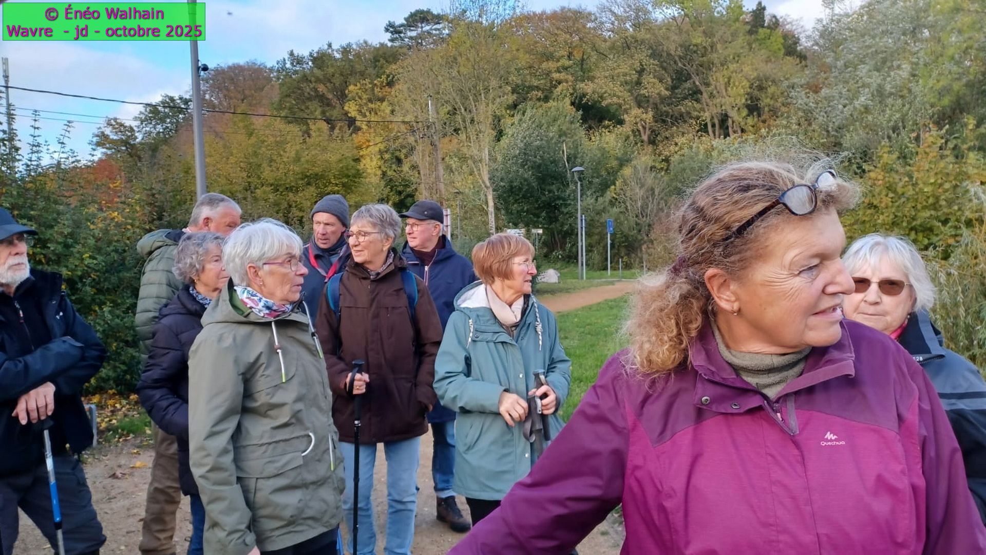 Départ, sous la houlette de Jean, en rejoignant l’école internationale « Le Verseau » avant de virer vers les récents immeubles, vides, du projet « les Collines de Wavre » puis les plus anciens, déjà occupés,pour rejoindre le centre « Equi’Days ». Un bel étang, bassin d’orage du nouveau quartier, contourné et nous remontons lentement via le lotissement du « Champ Saint-Anne » pour finalement traverser le bois du même nom, avec ses bunkers murés, vestiges de la ligne KV, pour retrouver notre parking de départ.