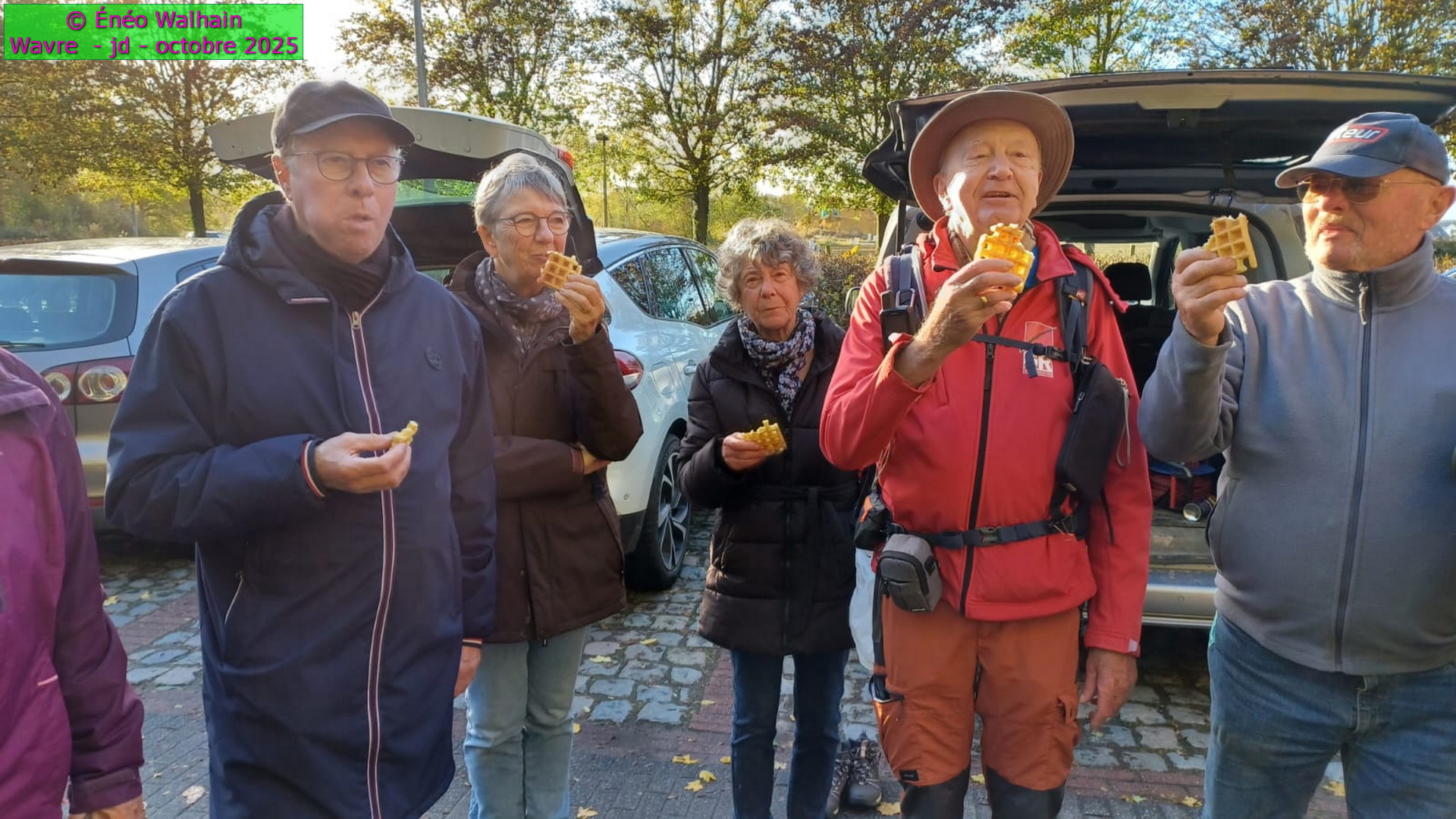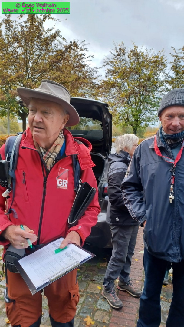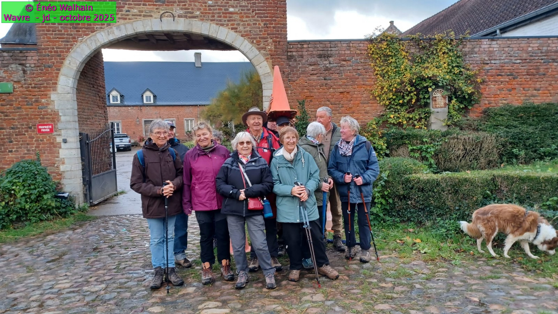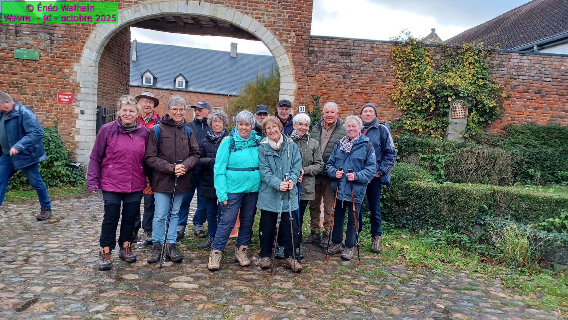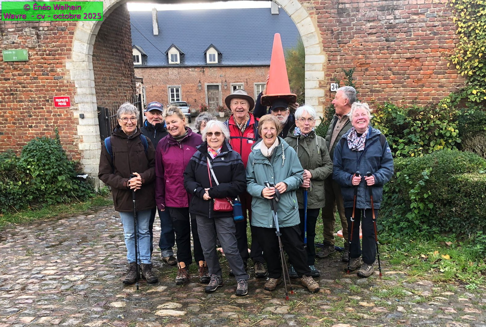 Départ, sous la houlette de Jean, en rejoignant l’école internationale « Le Verseau » avant de virer vers les récents immeubles, vides, du projet « les Collines de Wavre » puis les plus anciens, déjà occupés,pour rejoindre le centre « Equi’Days ». Un bel étang, bassin d’orage du nouveau quartier, contourné et nous remontons lentement via le lotissement du « Champ Saint-Anne » pour finalement traverser le bois du même nom, avec ses bunkers murés, vestiges de la ligne KV, pour retrouver notre parking de départ.