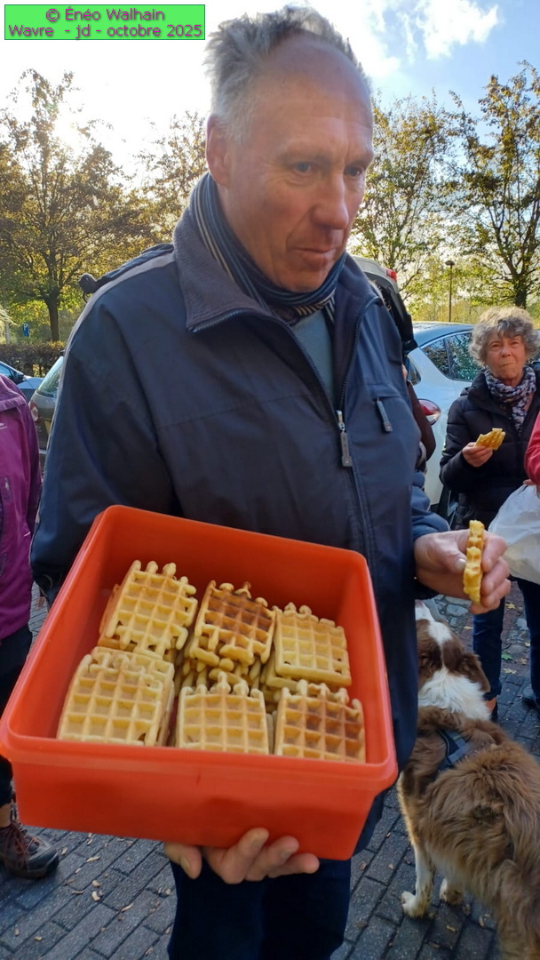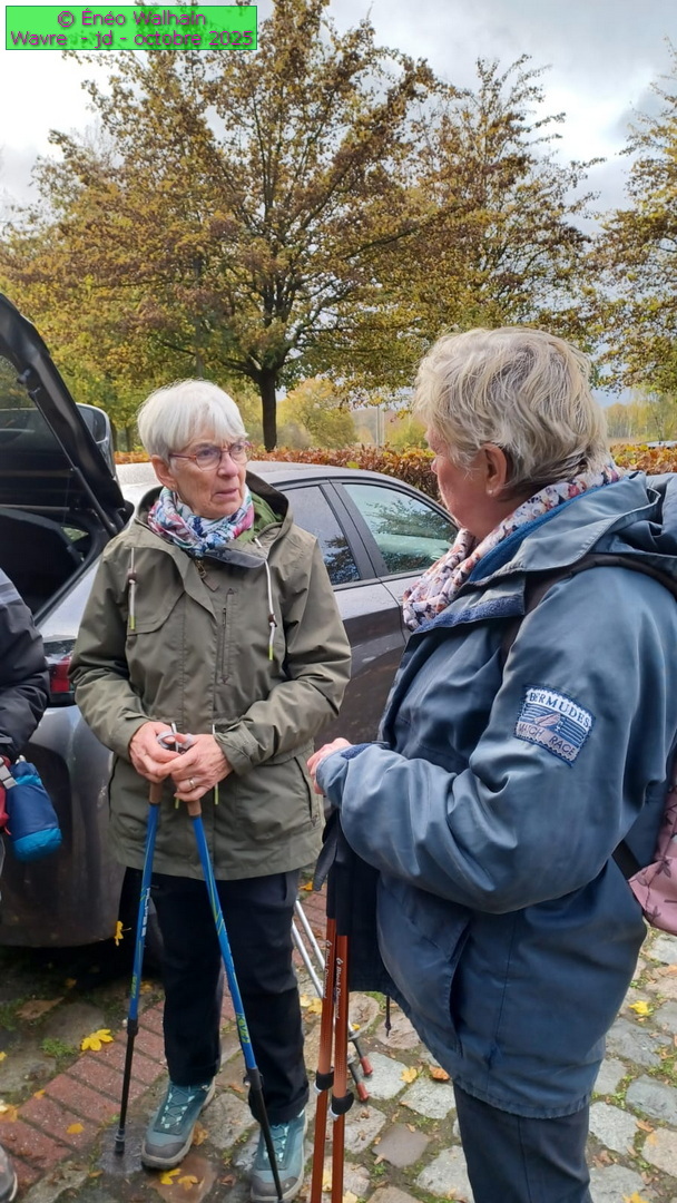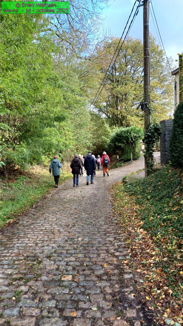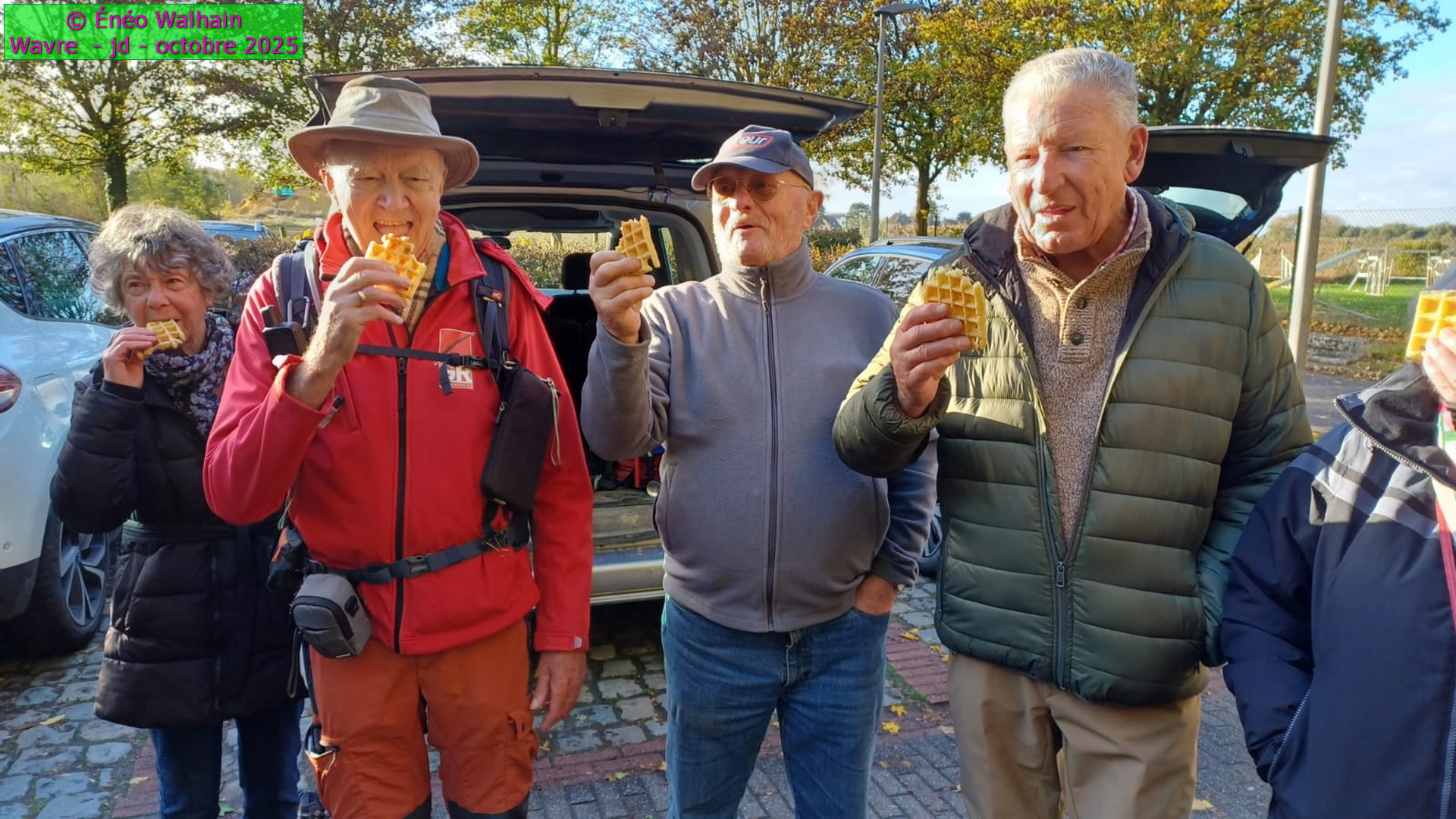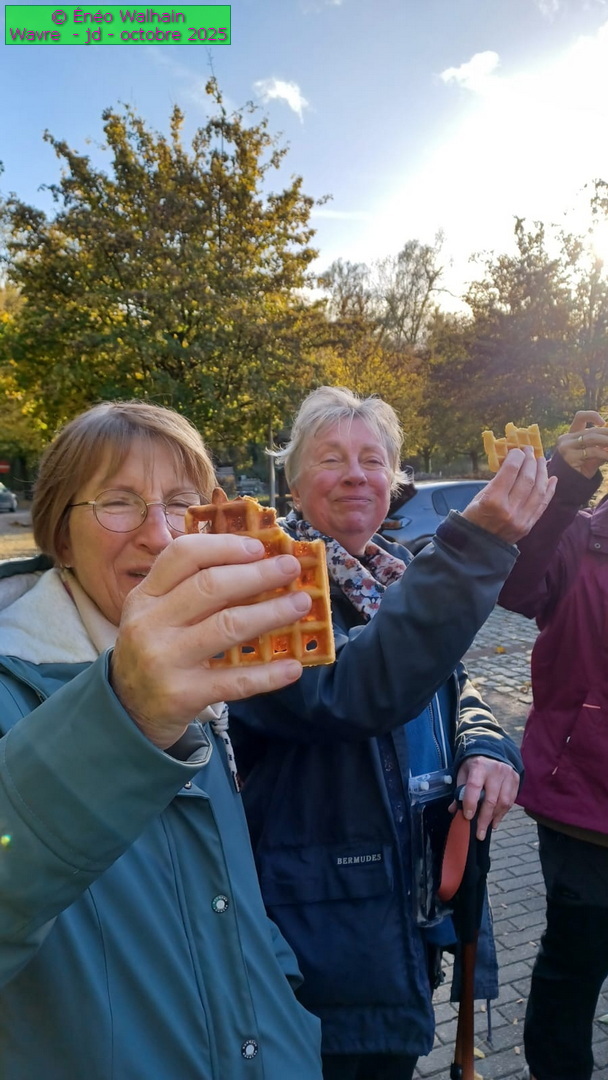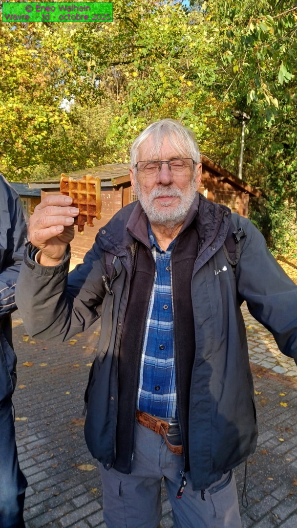 Départ, sous la houlette de Jean, en rejoignant l’école internationale « Le Verseau » avant de virer vers les récents immeubles, vides, du projet « les Collines de Wavre » puis les plus anciens, déjà occupés,pour rejoindre le centre « Equi’Days ». Un bel étang, bassin d’orage du nouveau quartier, contourné et nous remontons lentement via le lotissement du « Champ Saint-Anne » pour finalement traverser le bois du même nom, avec ses bunkers murés, vestiges de la ligne KV, pour retrouver notre parking de départ.