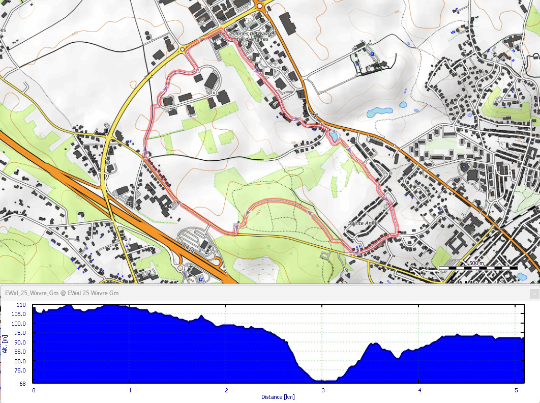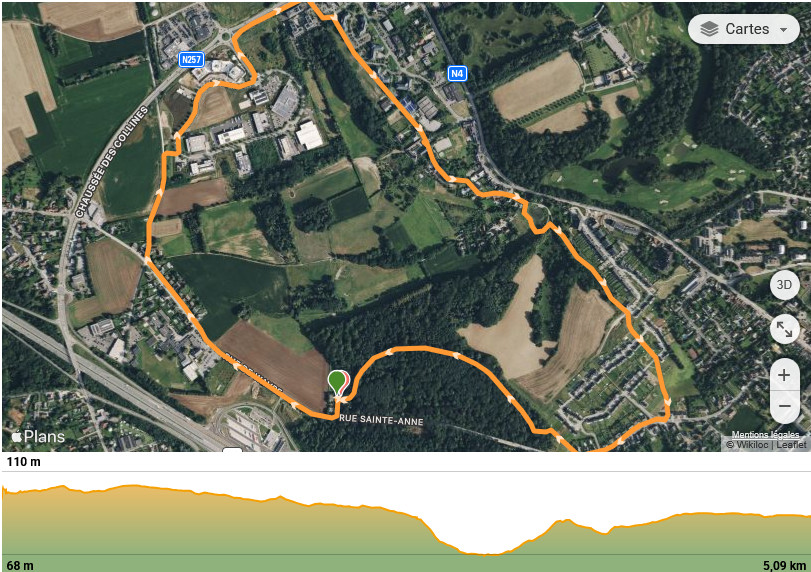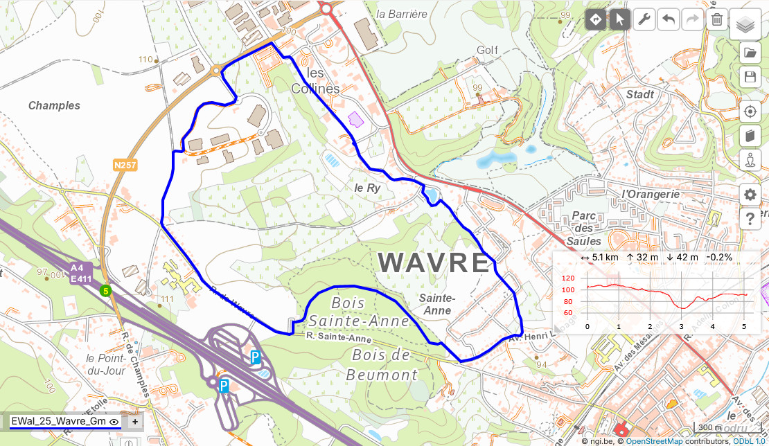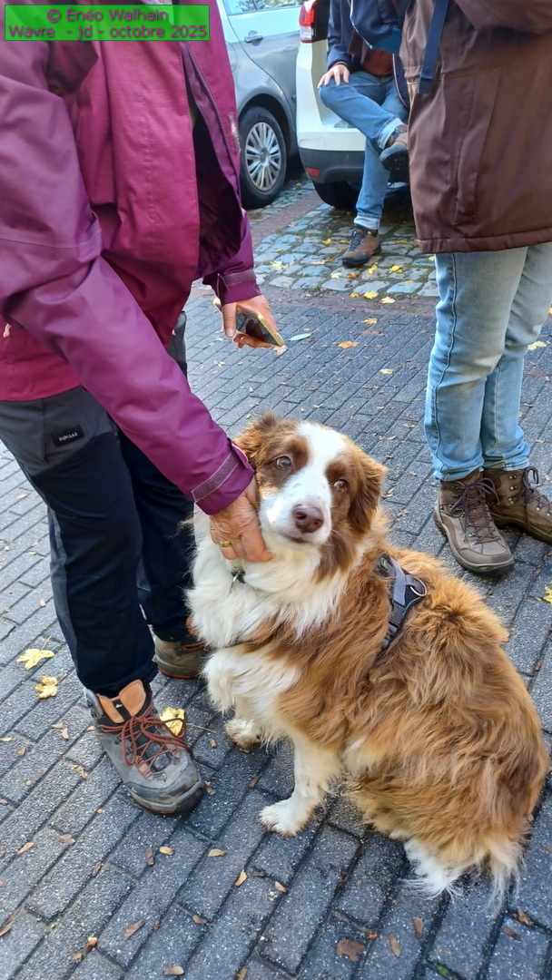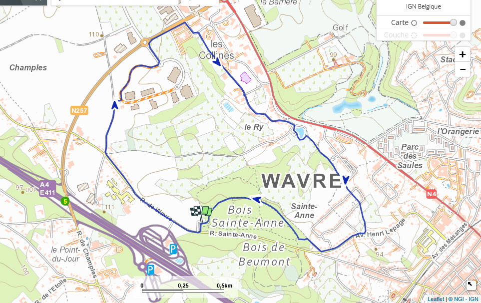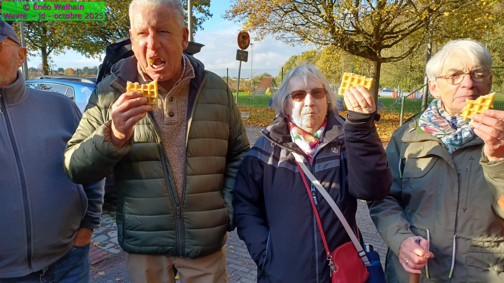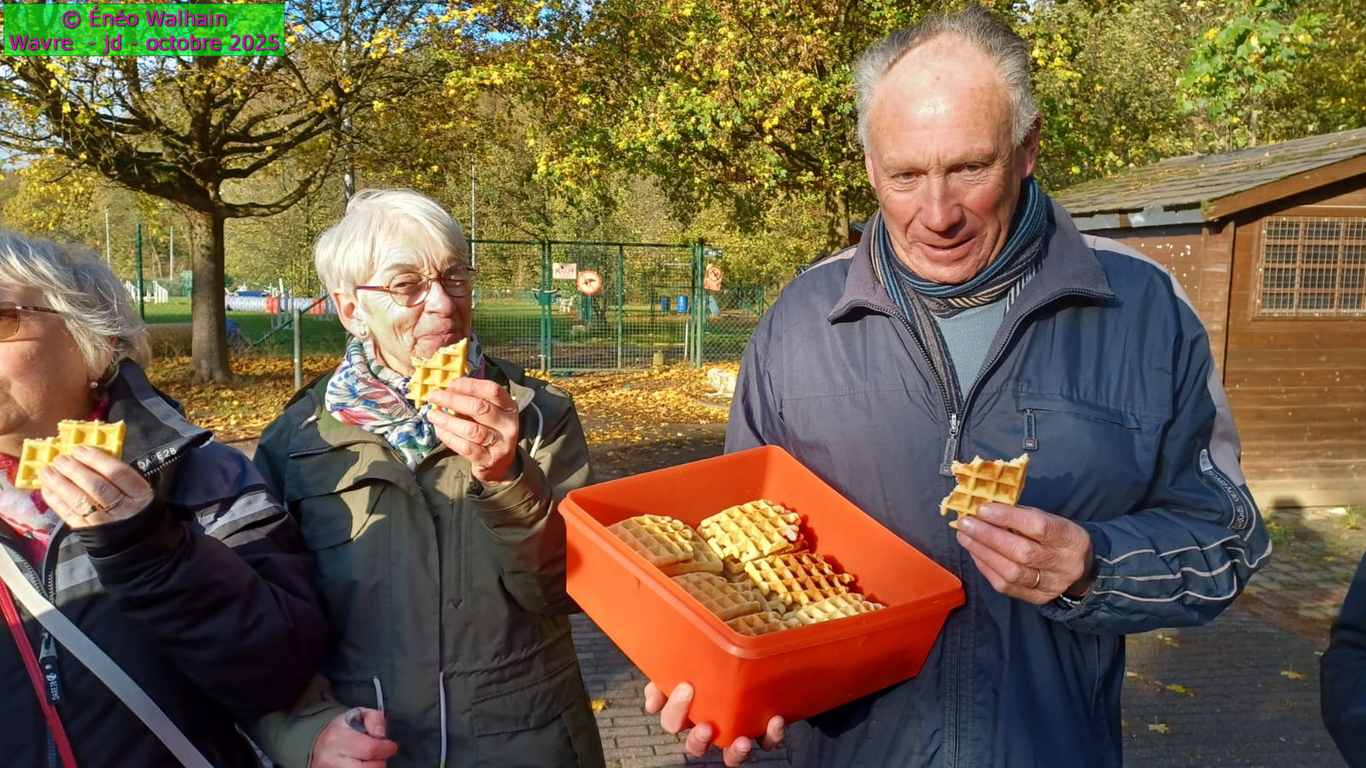 Départ, sous la houlette de Jean, en rejoignant l’école internationale « Le Verseau » avant de virer vers les récents immeubles, vides, du projet « les Collines de Wavre » puis les plus anciens, déjà occupés,pour rejoindre le centre « Equi’Days ». Un bel étang, bassin d’orage du nouveau quartier, contourné et nous remontons lentement via le lotissement du « Champ Saint-Anne » pour finalement traverser le bois du même nom, avec ses bunkers murés, vestiges de la ligne KV, pour retrouver notre parking de départ.